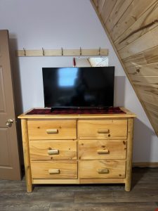 The amenities at Cedar Cove #4 are designed to enhance your lakeside experience and ensure your comfort throughout your stay. Guests can take advantage of kayaks, boats, paddle boats, and more, all available for exploring the pristine waters of the flowage. Fire pits and picnic tables offer the perfect setting for outdoor gatherings and enjoying the beauty of the surrounding landscape. Inside, the cabin features one bedroom with two single beds and a spacious loft with four single beds, providing ample sleeping accommodations for your group. The kitchen is fully equipped with all the essentials, including a refrigerator, stove, oven, microwave, toaster, and coffee maker, allowing you to prepare meals with ease. With its idyllic setting, cozy accommodations, and array of amenities, Cedar Cove #4 is the perfect destination for a relaxing and rejuvenating vacation on the Turtle Flambeau Flowage.
